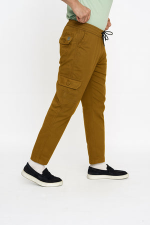 GoldenTag Men's Golden Brown Cotton Cargo Trousers