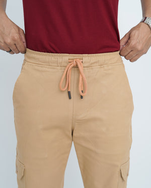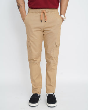 GoldenTag Men's Beige Cotton Cargo Trousers