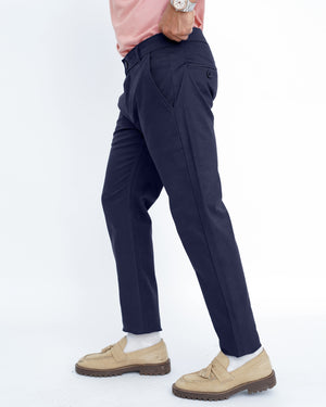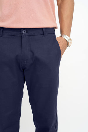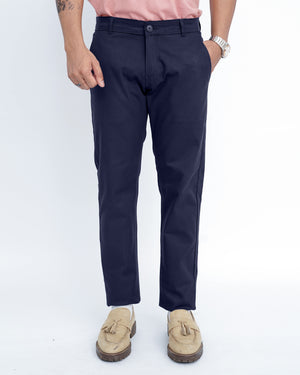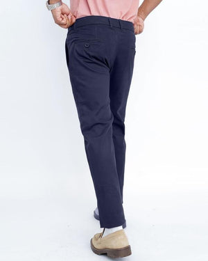 Navy Blue Cotton Pant-Smart Fit